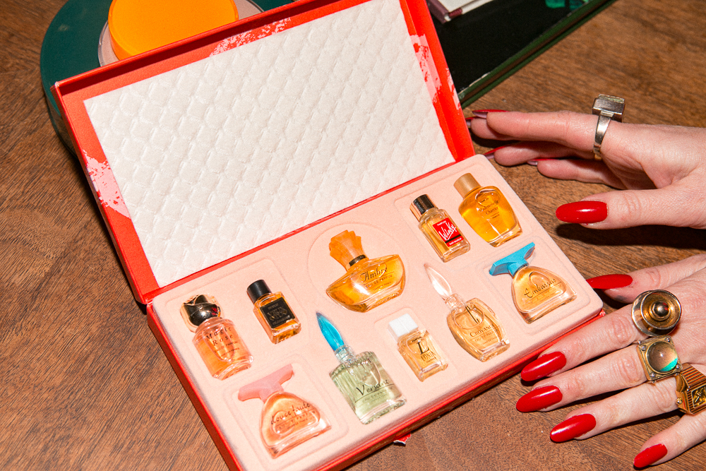 Nails are a huge part of my personality. For one, I started doing my nails because I used to bite them when I was a kid, and I figured out that the only way to not bite my nails was if they were too hard to bite through. So I started wearing drugstore press-ons because that was a big thing back in the day. I order them in stiletto shapes and file them down, and then I paint them. This is my red— Orly Nail Lacquer in Haute Red. They’re an Israeli brand, actually. In the summertime I use this Mia Secret Mood Color Changing Polish in Pink to Peach. It changes colors when you do the dishes!