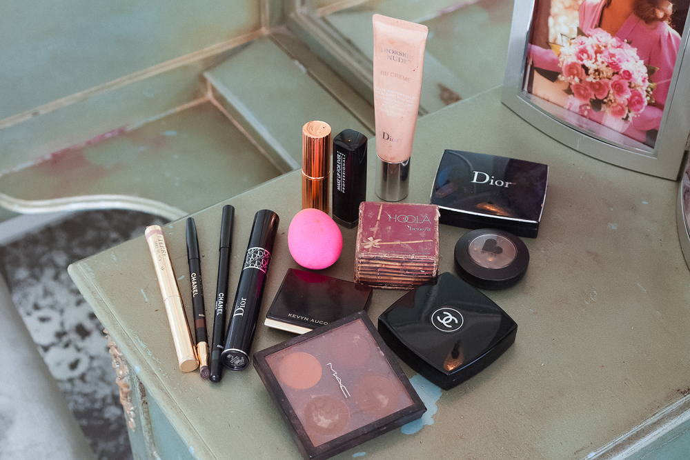 Growing up going to photoshoots, sometimes the makeup artists were nice enough to let me play with their makeup. I was such a little princess back then, so that was exciting. Now, a regular makeup day is probably wearing nothing on my skin. When I need a little something, I do have this really light BB cream called Diorskin Nude. I just put it on the areas that need it with a Beautyblender. Then I’ll do Chanel Le Crayon Yeux—they do such great liners—in Brun-Cuivré. It has a little bit of a shine to it and it’s really lovely. My mascaras fluctuate, but I like Revlon’s DoubleTwist Mascara. It’ll be that and maybe I’ll do eyeshadow, but it depends on the day. My favorite is Kevyn Aucoin’s Eyeshadow Duo in Storm Cloud/Malbec. I’ll do a little bit of bronzer depending on the time of the year and Benefit’s Hoola is really great.