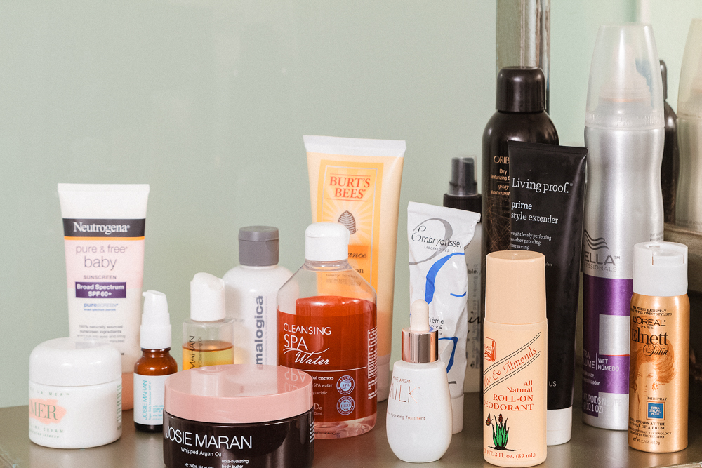 It's the same with my skincare—when you have a two-and-a-half-year-old, everything has to be quick. In the morning, I rinse my face with water, wash off with a face cloth and then put on Embryolisse Lait-Crème Concentré. It has been amazing for my skin and not too heavy. When I’m in LA I need sunscreen, so there’s the Josie Maran Argan Daily Moisturizer SPF 47. It’s all-natural and argan oil-based. Nighttime is a little bit more of a process...I start with Josie Maran Argan Cleansing Oil to get makeup off. I like oil-based products because they get down into your pores. Same with the Dermalogica Precleanse—I’ll use that and then Cleansing Spa Water by Koh Gen Do. They have wipes as well that I take with me when I travel. It’s great for taking off the residual makeup and it’s kind of a toner at the same time. My night cream is Crème de la Mer, which was given to me. I only use it when I feel I need it because it can be a bit much. It's a special treatment, maybe three or four times a week.
