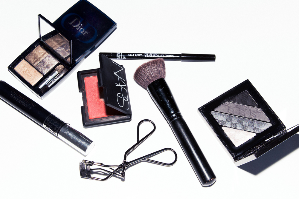 Now I like to do a badass cat eyeliner and mascara–kind of dirty. I curl my lashes with a Shu Uemura eyelash curler and put on Diorshow mascara, sometimes waterproof. I’ve used it for years. I tried to buy something else, but they don’t work! If you want thick lashes that stay curled after you curl them, I think it’s the way to go. The brush is really thick and if they try to sell you a brush that is really thin, it’s not going to happen. Then when the night comes I like to use black eyeliner and extend the edges, but it is very important that it’s really black with no blue to it because I like black. When I have pure black, I think it emphasizes the color of my eyes.