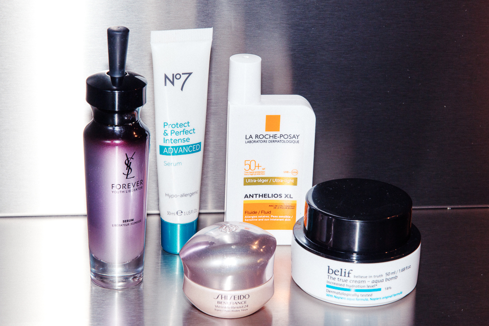 For a while I was using only one serum. I shot the campaign for this YSL Forever Youth Liberator Serum and then they gave me some and I tried it and it was amazing. But the experts were like, ‘No, no, no, serum is not the answer.’ I love the texture of serum because I don’t like to feel like I’m wearing a cape of cream on my face. Now I have Belif's The True Cream Aqua Bomb because it feels more like serum than cream. When I can't take that, I travel with a serum from Boots No. 7–the Protect & Perfect Intense Advanced Serum that I get at Duane Reade.