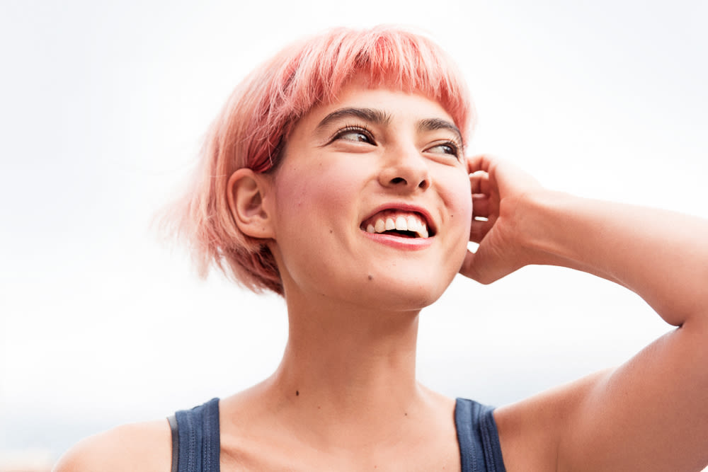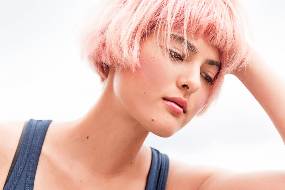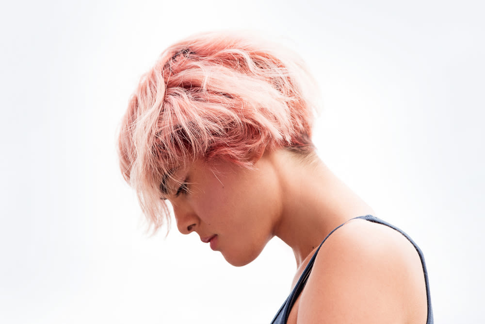 My attachment to my hair is pretty casual. I'm not gonna cry if I get a bad haircut. I actually had my hair buzzed for awhile, which was easy. But it grew back really weirdly—it did not look good. So I decided to cut it into a bob and bleach it so it wouldn't feel so boring. I go to my friend Penny who works at a salon in Orange County, where I'm from, called The Young American. We dyed it four times to get it bleached. She gave me this Davines Love Shampoo. It makes my hair feel nice, which is very difficult with bleached hair. My hair actually feels soft!