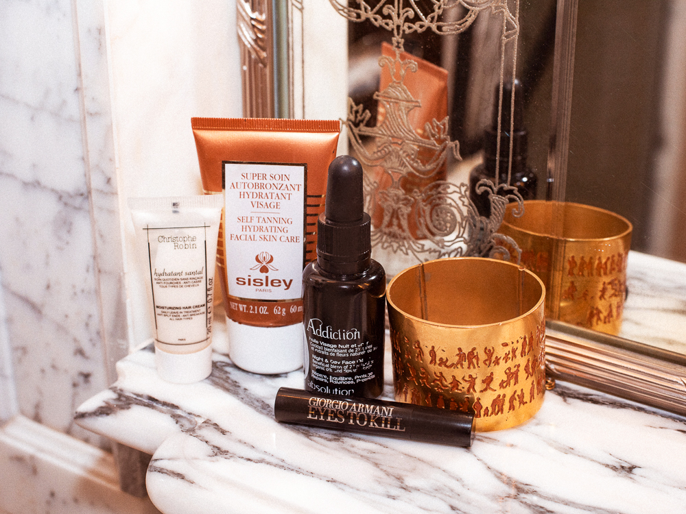 Once a month, I go to Françoise Morice for a facial because they have a very special way of manipulating the face that they invented—it’s incredible the light it brings to the skin. If I feel tired, I take 15 minutes to lie down and put a mask on. I love the one from SK-II because it helps with collagen and stays on your face. The Guerlain one is also very good and I've used it for my whole life. After a 15 minutes break, if I'm too tired when I get up and have to do something, I take vitamin C to give me a little pep.