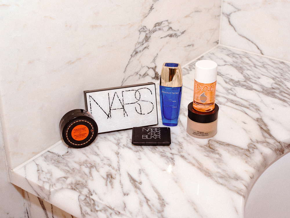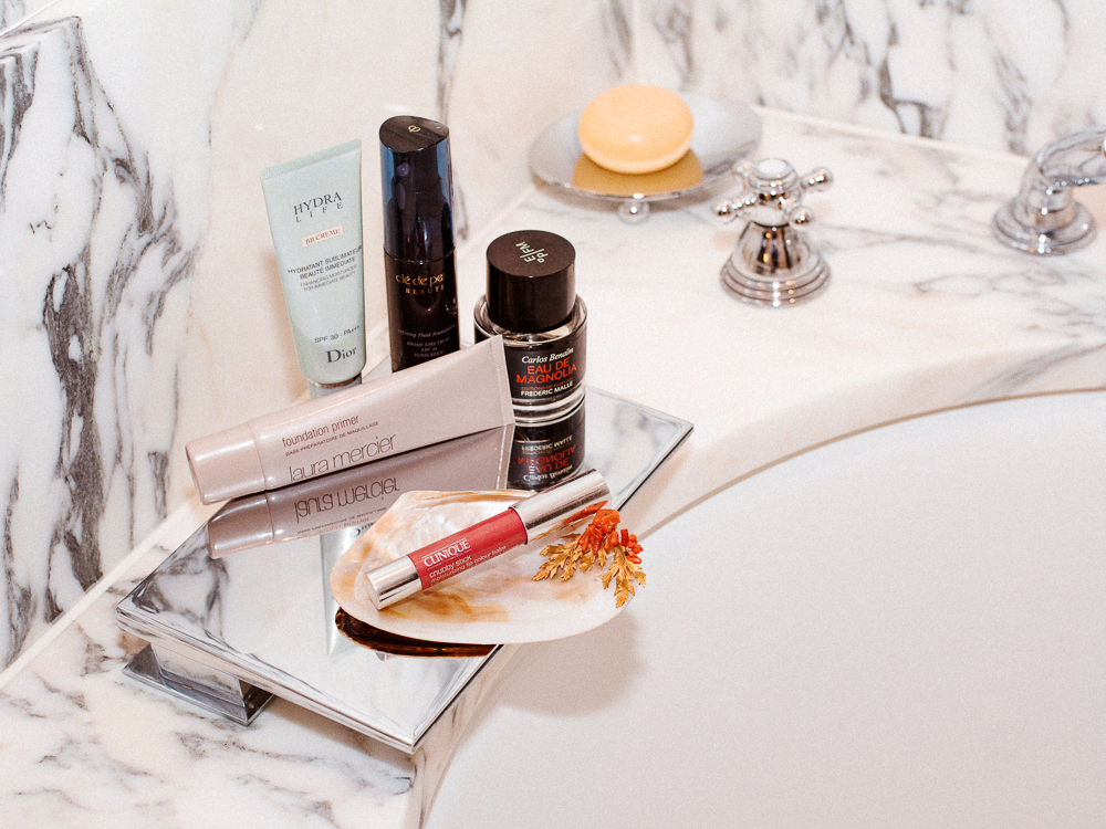 The other thing that is very important is powder, because if you’re going to put it on your skin all day, it has to be good. I like a MAC powder that doesn’t have any color, but helps mattify everything. And I use Cle de Peau’s translucent powder, which is hard to find. I have friends bring it back for me when they travel because we don’t have it in France anymore. They make really wonderful products.