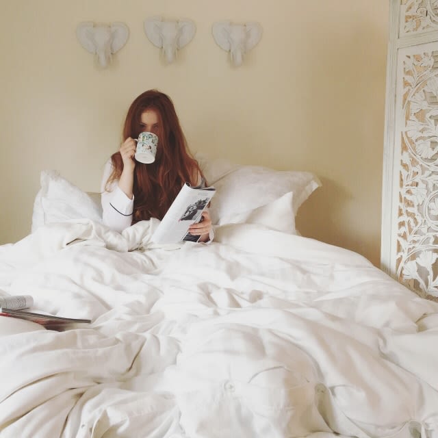 I work in beauty and unwind in beauty. To relax, I'll do a mask and take a bath. With friends, it's all about nails and booze. Doing your nails is so soothing. Whenever I’m upset, my friend invites me over for a little lacquer and liquor. I don’t know if it is the mindlessness of the task or the formaldehyde in the nail polish, but I always feel better afterwards. For base coats, I like something opaque to make the polish pop—Butter Nail Foundation and Julep Oxygen Smoothing Base Coat are good. My go-to color is Essie's Like Linen, topped off with Seche Vite.