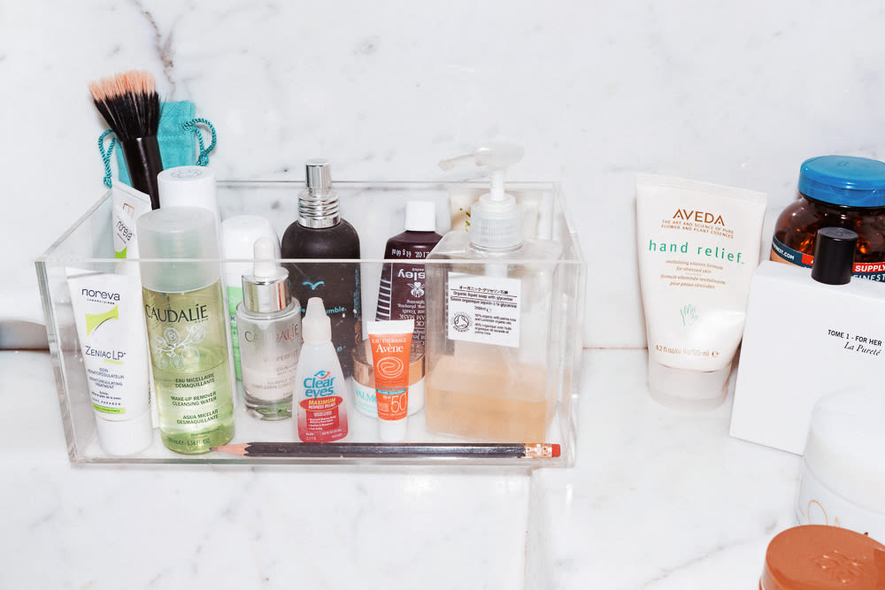 I am 45 and I’m not hiding it. I've always had a problem with my skin and breaking out so I really know which products work for me at this point—there are a few that definitely saved me. Biologique Recherche is what I use to get my skin back on track. I’ll even go to their institute if I need serious help. Otherwise I do everything myself. I’ve used Clinique Daily Moisturizer since I was a model. It’s amazing how a product can be so light and still give your skin so much moisture. Recently I discovered a brand called Tata Harper and have her morning scrub to start my day. It wakes my skin up. Moving forward in age, I like to use serum—Kiehl’s Midnight Recovery or Clarins Blue Orchid. And I always pinch my face because I want it to have freshness and to look as red and fresh as possible. Oh, and I’ve started using the Clarins Sunscreen on my face so that I don’t get sunspots.