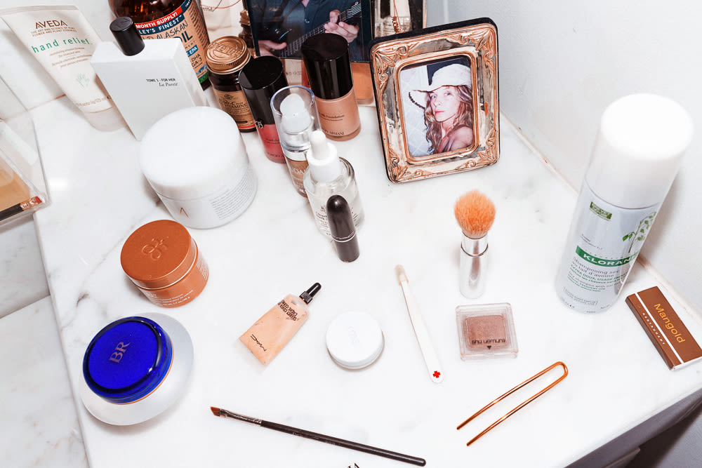 Brother Vellies Creative Director Aurora James starts the day with a cup of coffee (applied to her face) and Courrèges Style Director Lolita Jacobs swears by four makeup products—and only four—in The Top Shelf.