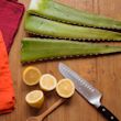 - To cut the aloe, slice the edges (that's where you see the pointy teeth) from each side of the leaf lengthwise. Then cut off the top flat flap of leaf, slice the inner gel, and finally cut off the bottom leaf, so that you're just left with the gel. If you end up with any green parts attached to the gel, just trim them off with a pairing knife!