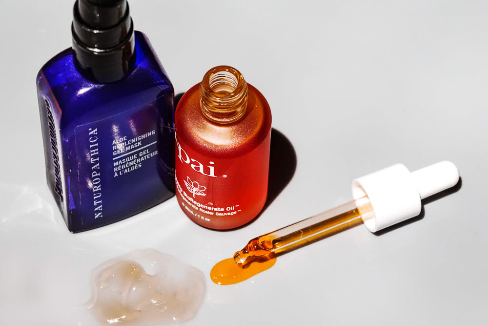 Actually, it started off as more of an argument. Alex wants me to wear oil on my face to bed, so my skin can binge out on fatty acids all night. But I can't do oils! I don't like the slick feeling. I much prefer something creamier—that kind of masky, filmy vibe on my face for sleeping time. So Alex recommended a happy medium for me: take a nourishing garden variety rosehip oil, and mix it with a basic, creamy product, like Naturopathica's Aloe Gel Mask. I get the texture I want with the ingredients she wants. Success!