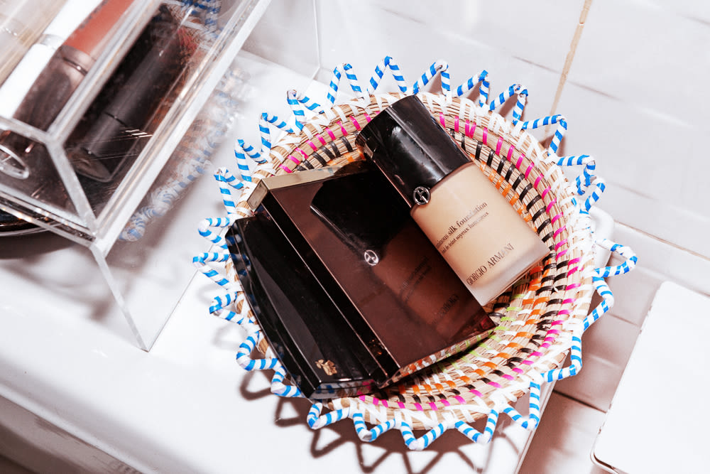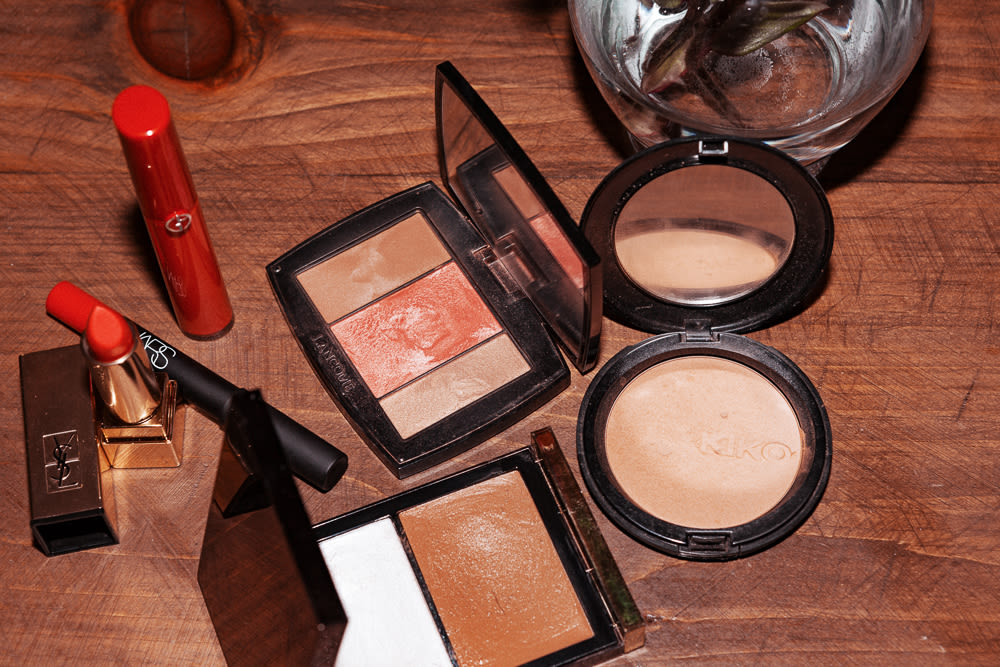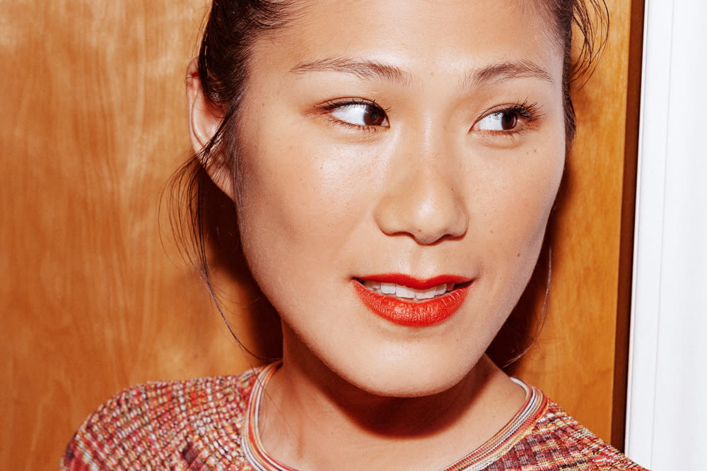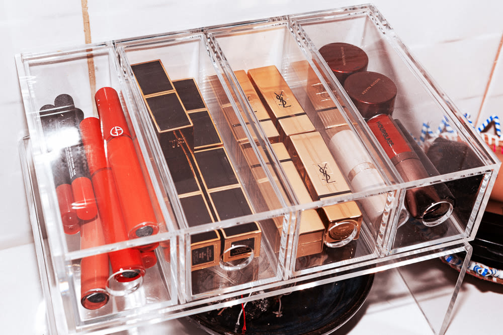 I used to wear tons of makeup, growing up. The look was all about the '90s–really thin brows, dark lipstick, crazy braids. I would pair an Alaïa baby tee with baggy pants and a choker, and goth makeup. It eventually became, 'What character do I want to be today?' I love makeup and I love playing with it but on myself... I’m older now too, you know? I can actually feel like myself instead of a character now. I get out of the shower, pull my hair back, do a red lip and I’m good to go. I love an orange-red in the summer, when I'm tan, like YSL Rouge Pur Couture in Orange Imagine or Rouge Rock. Then I also like this Armani Lip Maestro in 401. It goes on super smooth–the texture is fantastic.