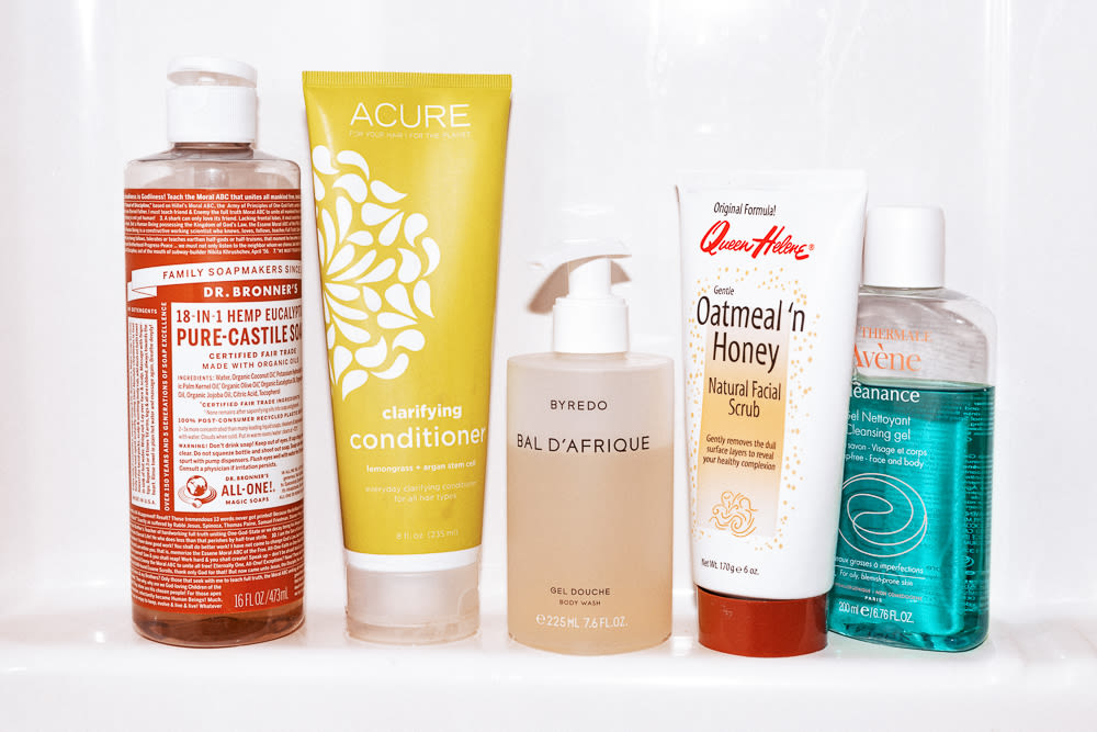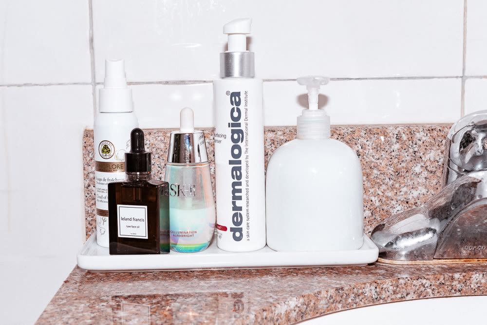 The more experience, the more you play, the more you figure out what you like you start to develop a more specific hand. For me, skin is big. My mom really hooked it up—she was a cosmetologist, so skin was very important to her. I think I started cleansing and moisturizing in middle school. My favorite cleanser is Avène Cleanance Gel, it’s so good. Not too drying, and it calms my skin down. And then every so often I’ll use this Queen Helene Mint Julep Scrub. It’s super basic but amazing. And then right now I’m using this really light SK-II Cellumination brightener. It just brings blood back into your face and plumps it up, and makes you look nice and fresh.