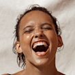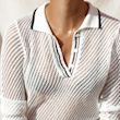 Cora wears a top and bottom by Matteau Swim and a polo by Frame.