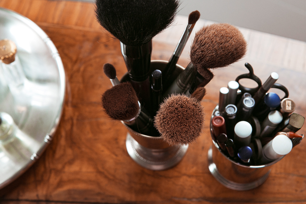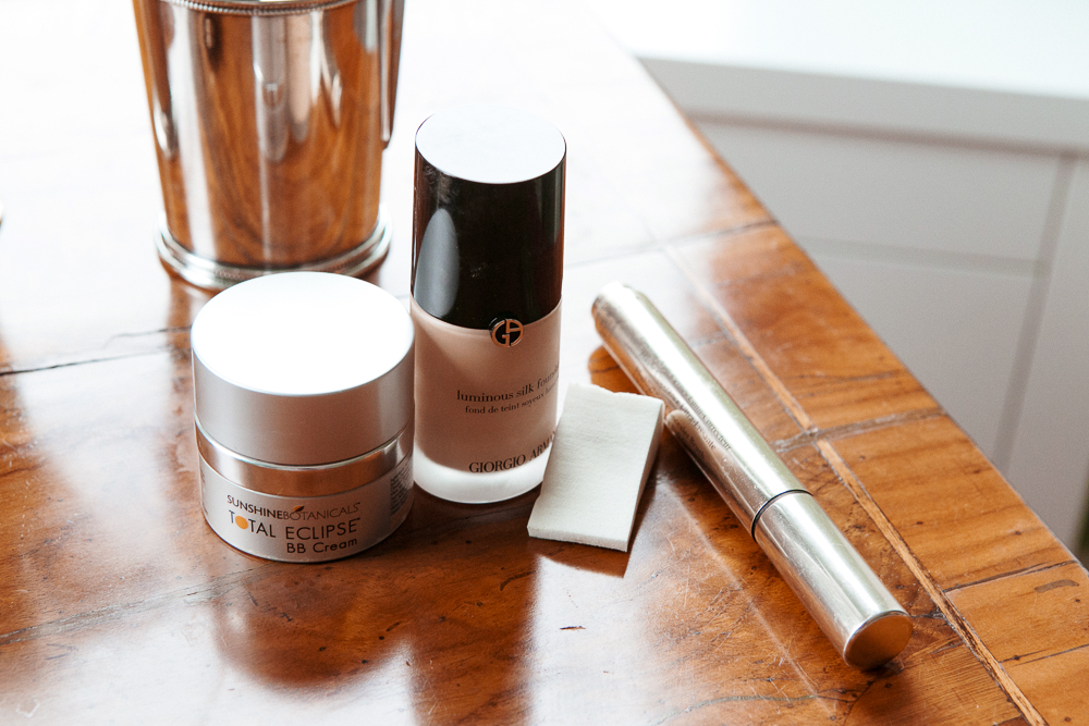 My SPF is Sunshine Botanicals Total Eclipse BB Cream, which has a tiny bit of tint in it. It just evens out my skin tone and makes sure no sun gets through—that’s what I do for makeup on weekends. Otherwise I use Giorgio Armani Luminous Silk Foundation in 4. It’s as close to my skin color as I’ve been able to find without hand mixing my own shade. The best thing about it is that it still looks good at the end of the day. Then I use By Terry Touch-Expert Advanced right under the eye or any other place that needs a little extra help.