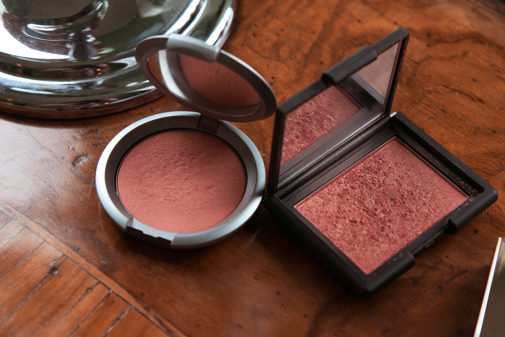 The only lip color that truly stays on all day is Revlon Colorstay. You can buy it at any drugstore for $6. I use Bare Maximum—it goes on matte and is a really nude shade—I can’t tell you how many people have said to me, ‘Is that your natural lip color?’ If I want an actual color on top of that, Glossier Generation G in Cake has become my go-to. I use a blush always—Nars Orgasm or T. LeClerc in Peche. Tom Ford Bronzing Powder is a summer product for me, if I’m pretending I actually got sun because nothing can get through my SPF.