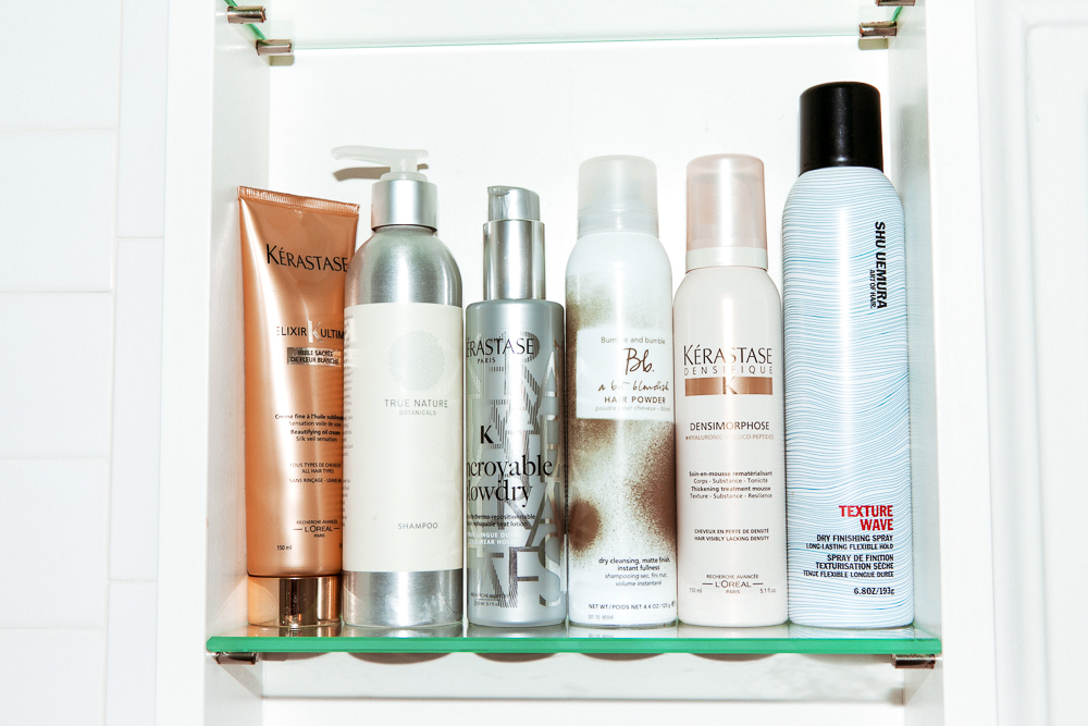 These days, I have Glamsquad come twice every week and blow dry my hair. That’ll last me for two or three days before I have to wash it. I know how to blow out my own hair, but it never looks as good as when they do it. To extend the life of a blowout I usually use Kerastase’s Incroyable, it’s not very heavy and it does allow you to style well. Sometimes I’ll alternate and use the Densimorphose Mousse because it gives you volume but it doesn’t look crazy. Eva also introduced me to Shu Uemura and they make amazing shampoos. I like the Cleansing Oil Shampoo for your hair because it doesn’t leave any residue, but you get a bit of gloss. The best of both worlds.