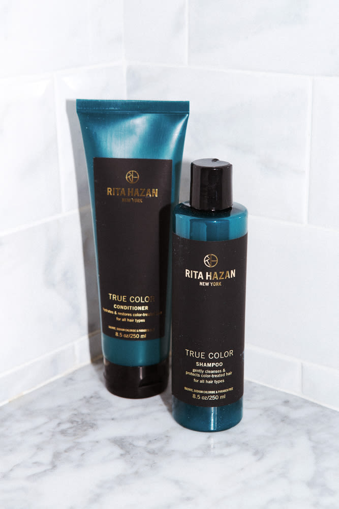 Rita Hazan does my color, and Juan Carlos Maciques, at her salon, does my cut. And she has a beautiful line of products—I just use her True Coor Shampoo and Conditioner. I wash my hair every day—guilty! I don't think I could go a day without washing it. If I absolutely have to, I put a little conditioner on the ends and I blow it out. But it's not as good as when Carlos does it. It's also naturally curly. In the summer I’ll leave it like that, but after a month or two, it won’t look [very good].