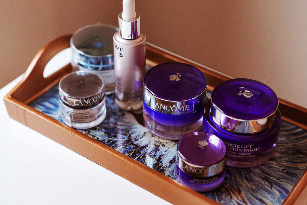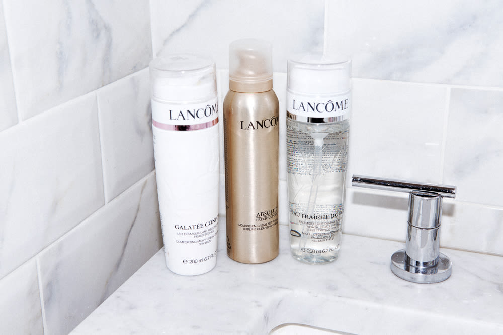 The Renergie Lift by Lancôme is my day cream. I'll use that or alternate it with the Bienfait Aqua Vital, which I use on all of my clients. When you put it on the skin, it has a fresh feeling to it. Then, under my eyes, I use the Bienfait Multi-Vital because the skin there needs a little bit of a boost. I use the Lancôme Eau Fraîche Douceur in the morning to cleanse, it's fabulous! If I have a little residue of mascara under my eyes it'll get rid of it. But I don’t think you need to cleanse every morning. At least for me, I still have a little cream on from the night before—I don't want to wash it off. I used to go to the Mario Badescu spa down the block for facials, every now and then. He has a fabulous Drying Lotion if you ever have a pimple.
