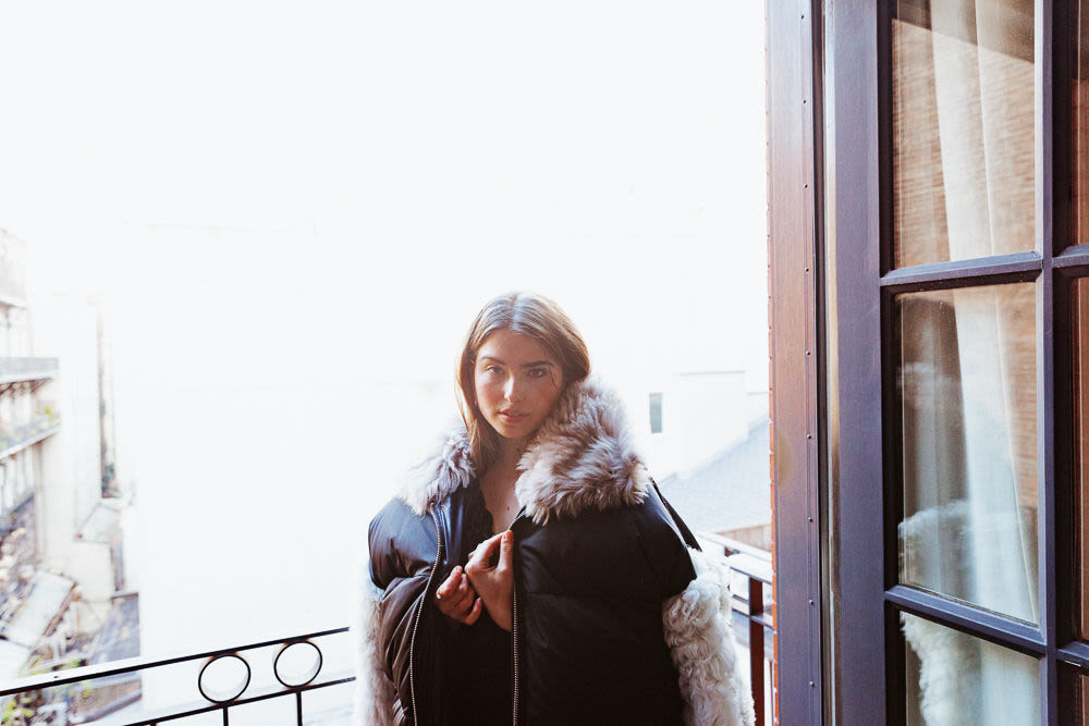 Eva Alt photographed by Tom Newton on November 19, 2016. Eva is wearing a Sandy Liang coat, Altuzarra dress, and Manolo Blahnik shoes. Styled by Lilli Millhiser. Hair by Clay Nielsen.