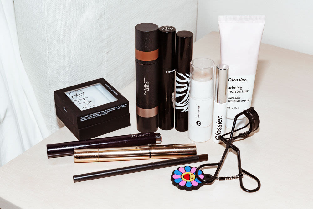 I start by leaving my well-moisturized skin as is, then applying the Tawny end of MAC's QuikTrik Stick on the high points of my cheekbones and blend in for a dewy, no-shimmer bronzer. Then I use a dark brown MAC pencil to define my brows a bit more and I layer Boy Brow in Brown over that. Falsies go on my bottom lashes, and I curl and apply a few coats of dark brown Volume de Chanel on the top. A bit of Haloscope in Moonstone on the center of my eyelids and cheekbones, and then lastly, lips. The perfect recipe is By Terry's Click Stick in Bare Me topped with Sisley Phyto Lip Twist in Nude, a forever favorite, for some lovely specks of glitter. I feel uncomfortable when I look too made up, or like I’m trying to look capital-s Sexy. But with the sort of undone hair and nails, and minimal makeup, I'm on the fresher side of glam. Now I’m ready for my entrance.