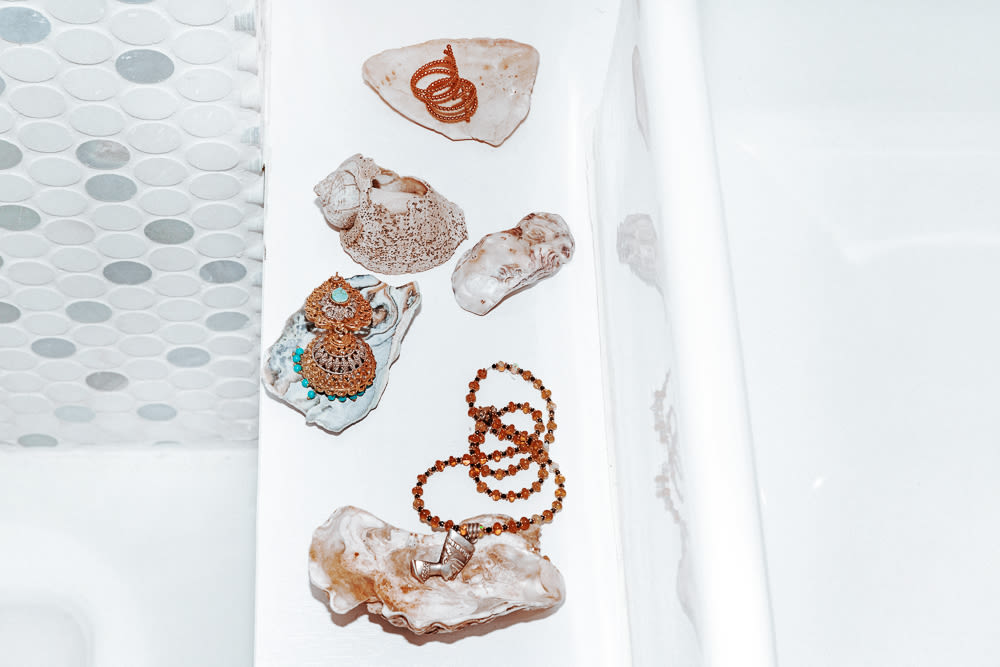I'm a very emotional dresser—I've always used clothes as a tool to stand out. I was picked on for what I was doing stylewise...girls would be like, 'What is she doing with those red socks?' But I'm feeling the red socks. They're giving me my lifeblood in the morning. [Laughs] I get dressed and then I scramble out the door. To think that some people take an hour in the morning to put a face on feels very foreign. It's not where my priorities lie. I just funnel all my money into clothing or jewelry or accessories. I found a blush, though—Nars Seduction. I feel like that's very adult me, and Nars Gilda is very college me.