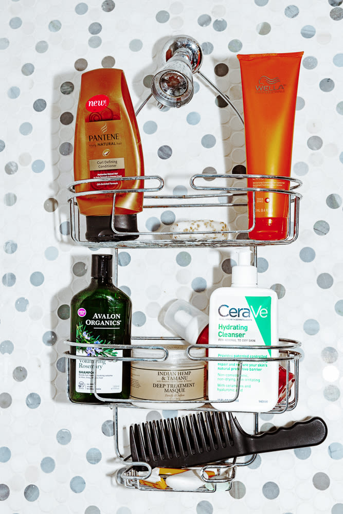 I’m a former Wen user. [Laughs] I had that routine down for years because it was my favorite thing to use on my hair. But all of a sudden my scalp started getting really sensitive—and I'd never been tender-headed before, so I switched. I use the Wella Conditioner for Coarse Hair now, they used that at my last haircut. Basically I do leave-in conditioner and on days I feel like I need to take really good care of my hair, I put African Shea Butter on it. I say if I’m being very good I wash my hair thoroughly once a week. Sometimes I’ll use coconut oil on it, but I also cook with coconut oil, so it feels like I smell like my food. Vidal Sassoon No Headache Headbands are amazing. I bought 10 while strolling through Walgreens and now I’m down to two or three. I like the style of my hair being up, but [the headband] looking invisible.