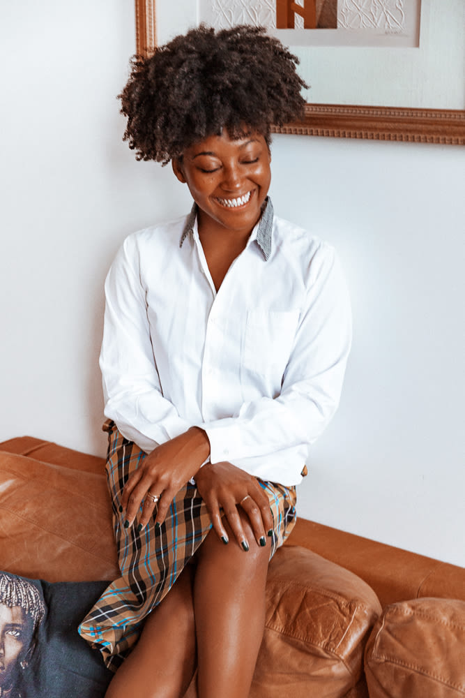I don't sleep with a silk scarf on, or anything. I don't like silk pillowcases either! I felt like when I went natural I didn’t need them. But I also think that people are so obsessed with having perfect curls and that’s why they’re crazy about using it. I’m not about the preservation of that. Sometimes I'll do little braids in the back, but not protective braids. I like my hair in its natural state, and I’m not afraid of frizz—it’s a pejorative [word]. I like the way it is. It’s me."