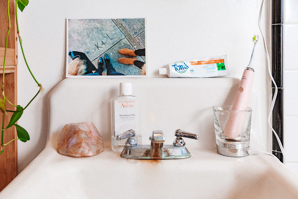 The other scent I love is jasmine. I have the Marvis Jasmin Mint Toothpaste, the Le Labo Jasmin 17 perfume, and in April and May, all of Venice [Beach] smells like jasmine. It’s the most heavenly scent. The one perfume I like more than that is Maison Louis Marie Bois De Balincourt. It’s a bit softer then Le Labo [Santal]. My boyfriend just started wearing it, too. In my living room, I have this little diffuser and I’ll make it smell like a salon in here. If I get sick I use the Doterra Breathe Respiratory Blend. I have a digestion one and you add it to water but for the most part I kind of mix them all up and throw the blend into the diffuser. A drop of this Melaleuca with Lavender is really nice. I also burn my sage every once and a while. It’s a very California thing to do—I’ve been drawn to it since I was a kid. But for now, though, London is calling.”