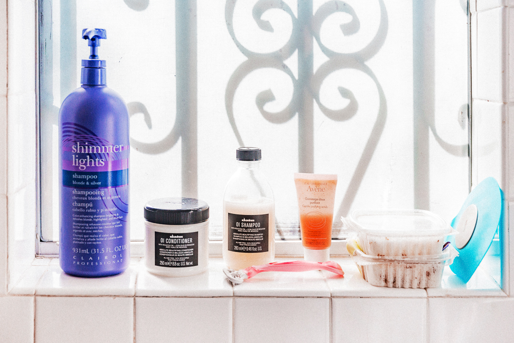 I’ve always gotten facials intermittently, but since I turned 27 I feel like I need to do it once a month. Now I go to Tanya Skincare in Santa Monica, which is a beautiful studio. Tanya’s introduced me to a bunch of skincare products, and I mainly use Skinceuticals with some Avène thrown in. The first thing I do in the morning is wash my face with Avène Oil-Free Gel Cleanser or Avène Antirougeurs Dermo Cleansing Milk if I want something a little less intense. Then I’ll go in with this Skinceuticals Conditioning Solution, which is a gentle exfoliating toner. I’ll take a cotton pad and do three squirts on there and wipe it all over my face. Skinceuticals makes a bunch of good serums, too. Right now I’m enjoying the Retexturing Activator because I feel like the texture of my skin isn’t perfect and this helps. There’s also the Skinceuticals Metacell Renewal B3 that I use as a moisturizer. It’s really nice and light and feels so good on my skin. In the winter, I use this Aesop Elemental Facial Barrier Cream. It’s kind of intense, but I’m moving to London soon and I think it’ll be really crucial there. I love Aesop.