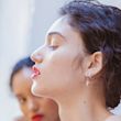 OK, if you want to spend a soupçon more time on your hair (and why not? Diffusing and scrunching is so low-impact you might feel motivated to go harder...), Neil got a little fancy for some inspo. Claudia got a loose chignon, this time properly at the nape of the neck, with texture all around, utilizing the Aquage Thickening Spraygel for an almost-wet look. The feeling? Soft but definitely polished. Meanwhile, Xiara got two braids roped around each other and detailed with the appropriately named Aquage Detailing Creme. Proper braiding makes hair happy and healthy, and stays put, which is key. Because if there's one thing girls with curly hair know, it's that natural hair rarely stays where you put it for long. Sometimes it's nice to be a little hands off.
