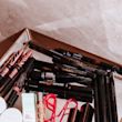 I'm all about highlighting now, but I used to do these green panda eyes—that used to be my look. Now I use much less eyeshadow. Sometimes a makeup artist will use a little brown on my eyelids. You know the Anastasia Contour Kit? It's that brown. The only mascara I use is Lancôme Hypercurl because I find the other ones to be too heavy. Then I have this Korean mascara from Etude House that I use on my lower lash line, drawing tiny dots that from a distance look like lashes. But a cat-eye is me. I feel like I can't leave the house without it. I use the Tom Ford Eye Defining Pen, but only to draw. Then I go back and fill in with the Benefit Push-Up Liner. I swear by it. Everybody complains about it, no one can handle it. But that's a good thing—more for me. [Laughs]
