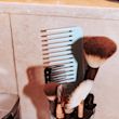 The only hairdresser I trust is Celeste at Symmetria Salon. Only her. When I went to get this cut, I just said, 'Make me look good.' [Laughs] This is my first time having bangs and I am so happy about them. My hair is naturally wavy and crazy, so after I get out of the shower, I air dry and use this Bumble and bumble Dryspun for my texture. Then I’ll use the Oribe Sculpting Cream for more texture, and the Tresemmé Finishing Spray for when I'm done. My fragrance is Maison Francis Kurkdjian Apom. I'll wear that all day and all night. Serge Lutens L'eau de Paille is also great—I wear that when I'm looking for something fresher.