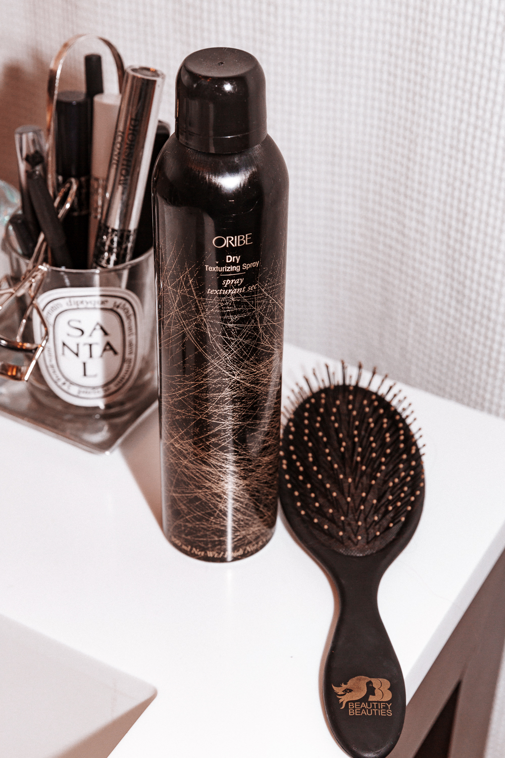 After the shower, I brush my hair, and I'll either air dry it or blow it straight. I’m not really married to a dryer, but I’m dying to try the Dyson. It dries your hair in three minutes which sounds amazing. Not really any styling products, though. Sometimes I'll use the Oribe Texturizing Spray when I flat iron my hair, just to lift it a bit.