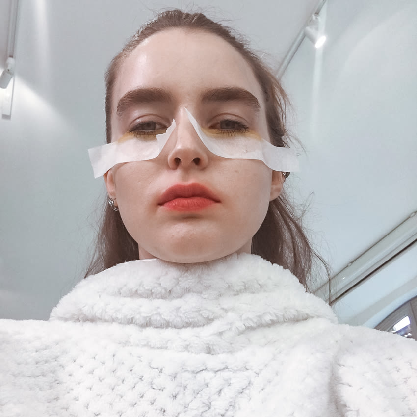 After the job, I use the makeup artist's Bioderma Crealine to take off my makeup. We did nine different makeup looks so my skin is pretty tired and irritated. I use Glossier Milky Jelly when I get back to the apartment to take off what I didn't get earlier. It feels really moisturizing, but is also good at dissolving anything on my skin.