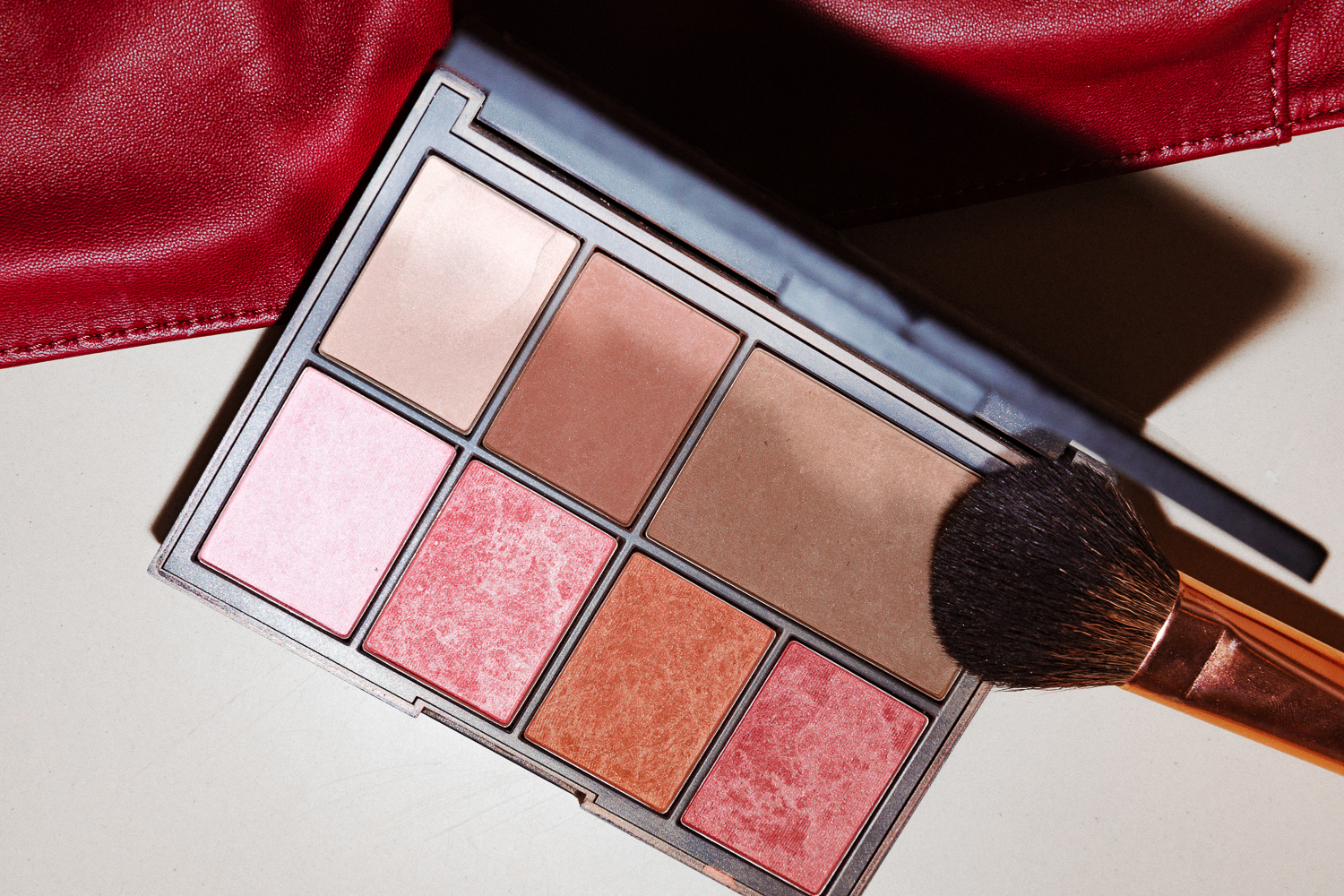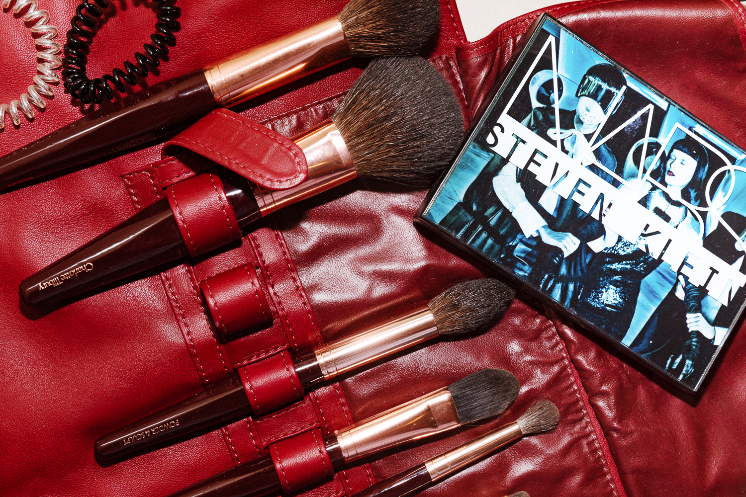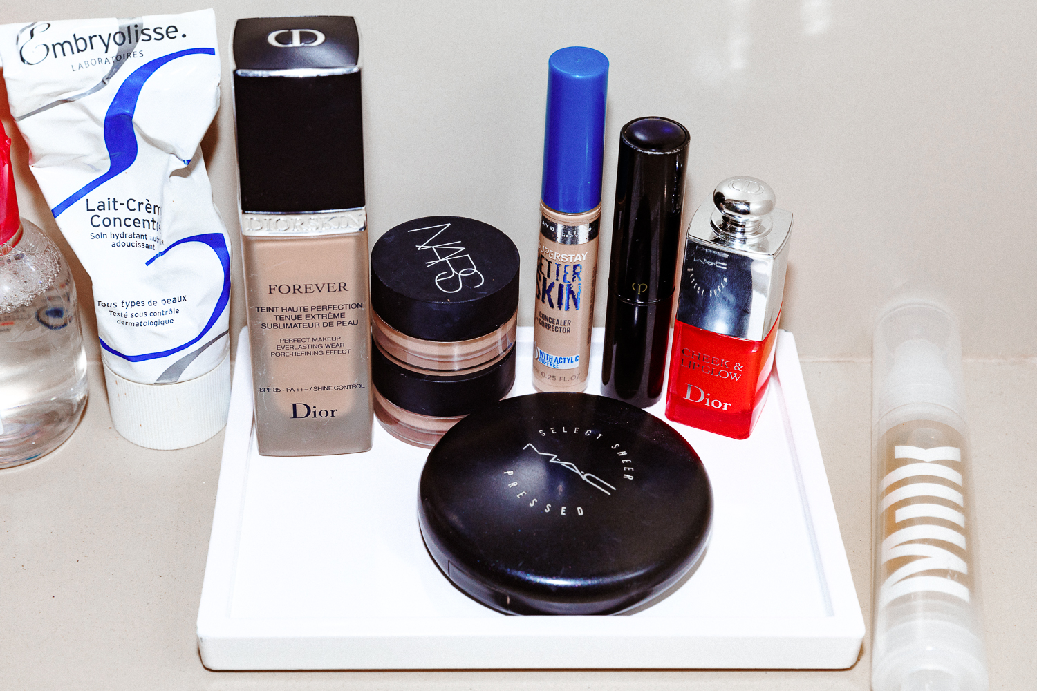 What I'm really excited about is my makeup. It finally feels like summer, so I want to do something bronzy—kind of Brooke Shields in Blue Lagoon. That kind of makeup just brings my face to life. I only use this Dior Foundation on spots, because I don't like to look too powdery. What I actually use all over is this Jergen's Tinted Moisturizer in Medium, for an even, smooth base. Then I like to use one of Nars' pressed powders—Paloma is the best for contouring. That and the Steven Klein Cheek Palette [ed note: discontinued] are what I use the most. Milk's Highlight Stick in Lit is fabulous—so is their Sunshine Oil. You can put a little on your cheekbones and glow. A tan smoky eye, some bronzer... Sometimes I'll use the Kevyn Aucoin Bronzing Veil because it's incredible, but I can go overboard. Once, I put too much on in a dark bathroom and had my photo taken afterwards. That was awful.
