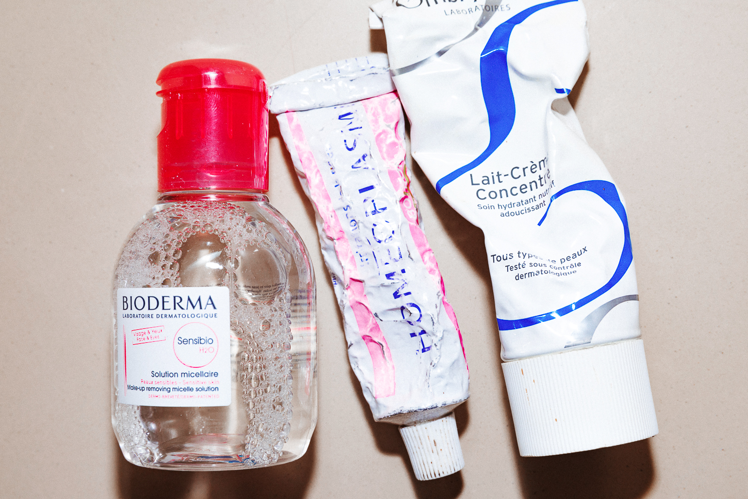 When I get home, I wash my face and try to drink a lot of water. I take off my makeup with Bioderma Créaline, and then I use Biologique Recherche, which is a pretty intense brand. They have this milky Lait U Cleanser I like that my dermatologist recommended. It's funny—I was traveling between Tulum and Miami for work, and the mix of the sun, water, and plane travel aggressively broke me out. I was at a hotel and they had Biologique products, so I bought the P50, and it completely cleared up my skin. That's why I stick to what works. If I go off of my regimen, that's when the breakouts happen."