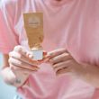Every morning and evening, I use Bioderma as a cleanser. I don’t really use a cleanser, unless I’ve got makeup on. This Ahava Facial Renewal Peel is a new thing that I’ve used a couple times. Then I use Skinceuticals CE Ferulic Serum on my whole face. I put one or two drops. I use it twice or three times a week—it tans you a bit, I think. Then, I use Weleda Calendula Face Cream, which is a baby face cream. It’s lightweight and it’s not cloggy. I’ve really struggled with moisturizers because I have acne. You can’t tell right now because I have an amazing facialist, Teresa Tarmey. She’s really good. I’m quite terrified to try anything else. This is an exfoliator from Japan, Cure Natural Aqua Gel. It’s got peroxide in it, which is really great if you’ve got problem skin like mine. I use it once a month. If I’m not at home and I’ve forgotten everything, I’ll use coconut oil to cleanse, moisturize, take my makeup off and I put it on my scalp. At nighttime, I use Kiehl’s Midnight Recovery Oil.