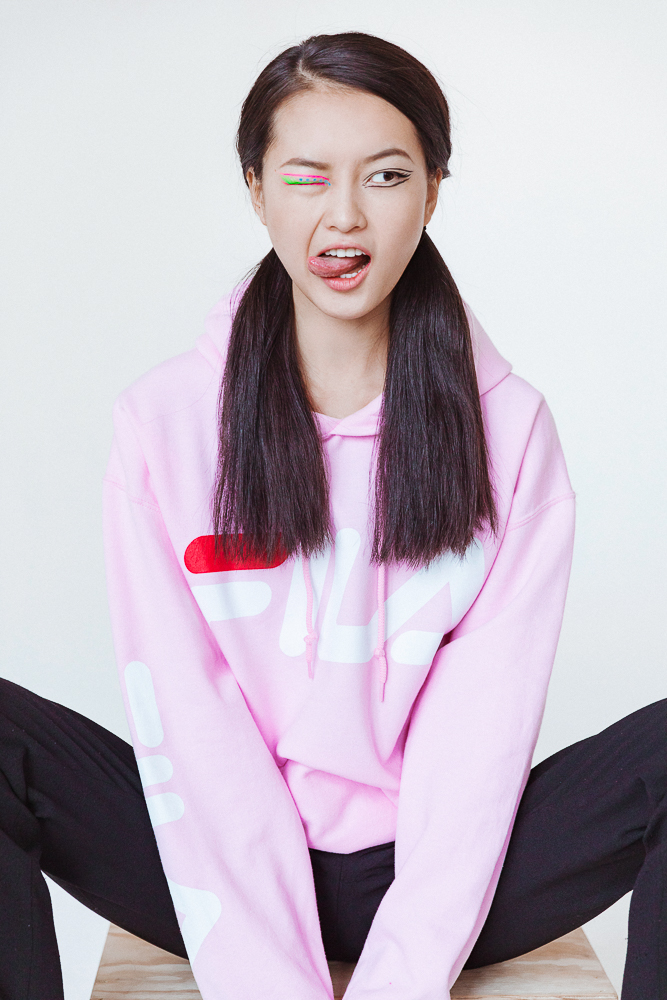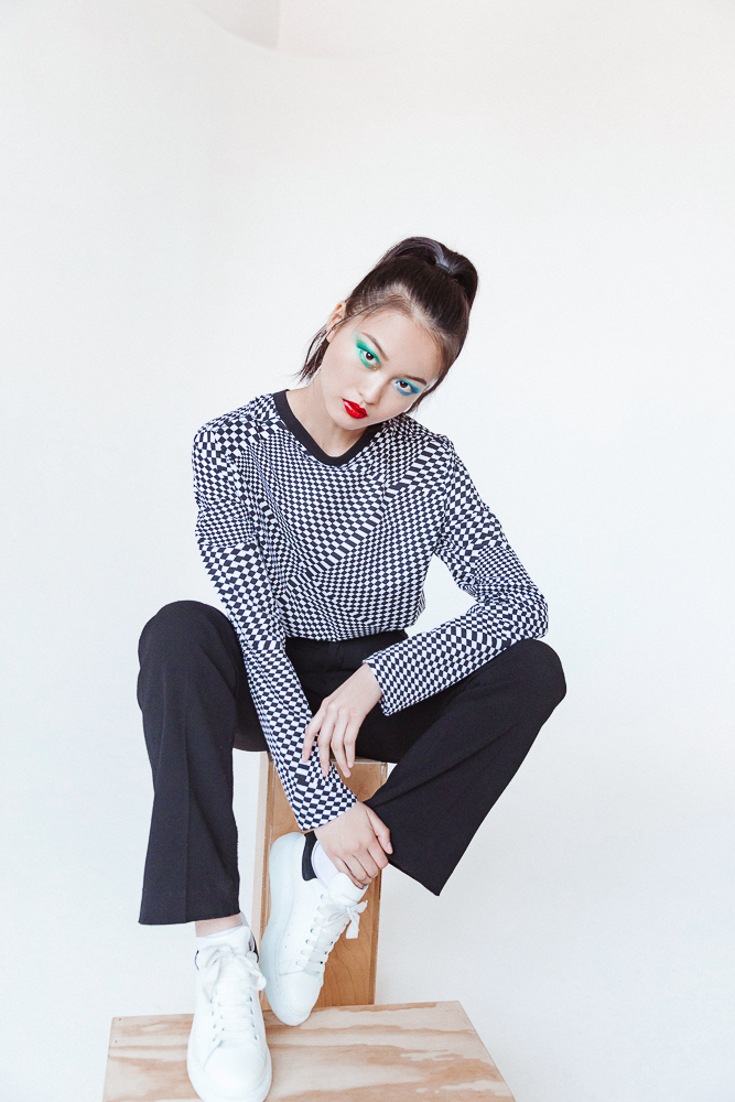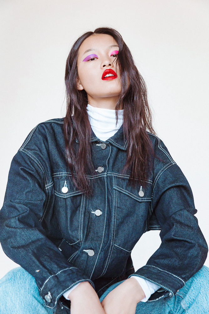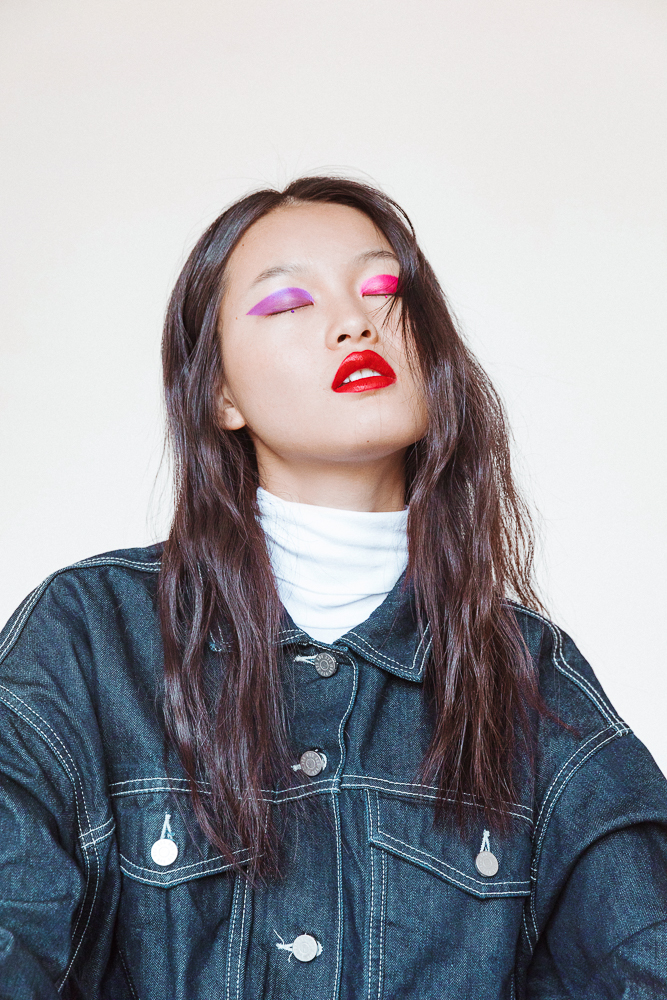 Xin Xie (The Lions) photographed by Tom Newton. Makeup by Emi Kaneko (Bryant Artists). Hair by Clara Leonard. Styled by Maggie Foster.