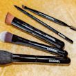 Here is your golden child of the set: A stiff brush shaped like a felt-tipped marker and meant for applying cream eyeliner- and eyeshadow-pots. Delivering in the smooth application department. Chanel does eyes better than anyone, so this time I’ll be going full ‘60s with Calligraphie de Chanel Longwear Cream eyeliner, making a thick, lustrous black wing along the top lash line. Can’t forget the salmon-y pink lip, white highlight, blue eyeshadow, and bright pink blush with this look.