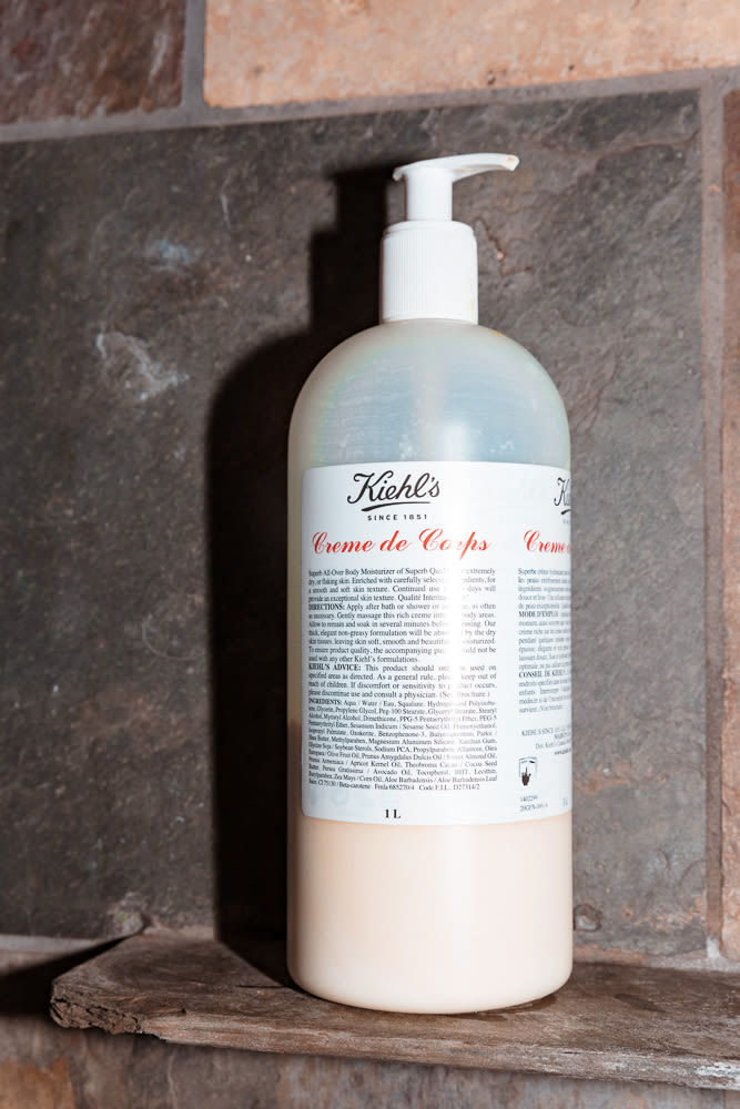 I love the Coco and Sandalwood Body Wash from Molton Brown–it smells so good. I found this Shiseido self-tanner gel which I love. It’s a clear gel and it comes in a pump. I’ll moisturize with Crème de Corps, which is one of my favorite products, and then put it on top afterwards. It’s subtle, but still has color.