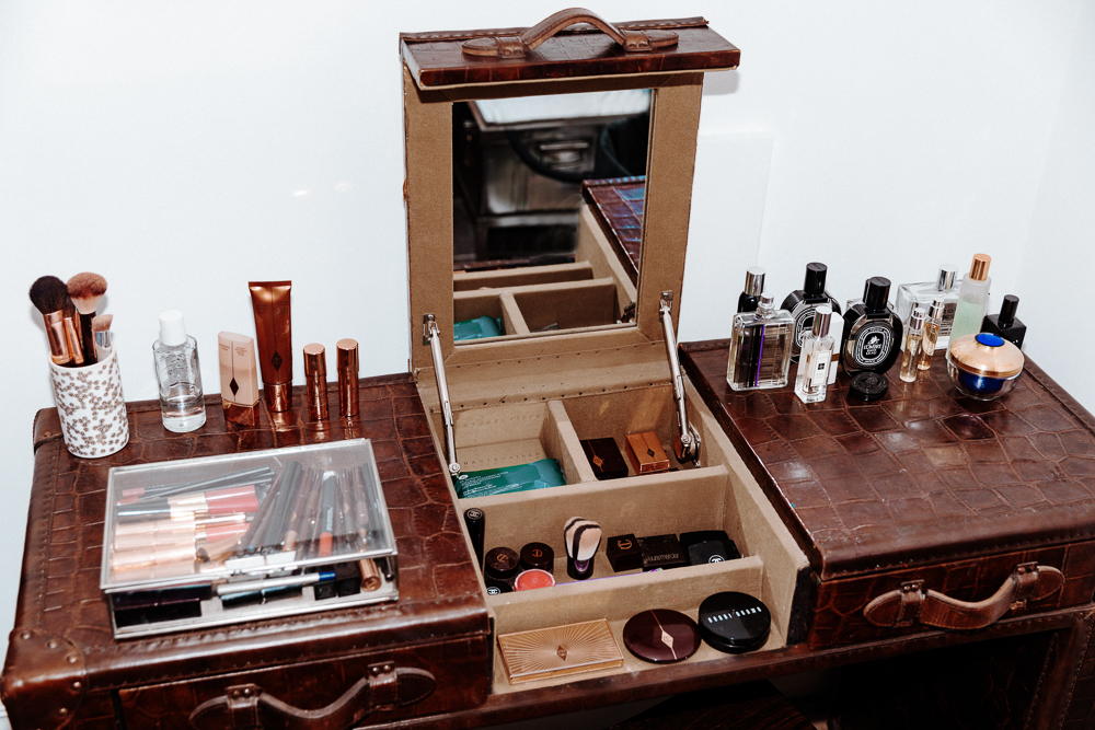 I’m a complete makeup junkie, but I’ve found that as I get older less tends to be more. I’m big into lashes and blush. I love the Charlotte Tilbury Blush in Ecstasy. It’s so pretty. When Charlotte Tilbury first came to Holt Renfrew, I got to meet her. She sat down and spent 15 minutes completely transforming this beautiful, bare-skinned model. I completely bought into the idea of the palettes and the looks. I’ve recommended [the line] to so many of my friends because it’s easy. I’ve gone through every bronzer, but the Filmstar Bronzer is my favorite. I use it with this Chantecaille brush. I love the color and the texture. If I’m going out at night, I’ll use it as a highlighter because it gives a little bit of shimmer.