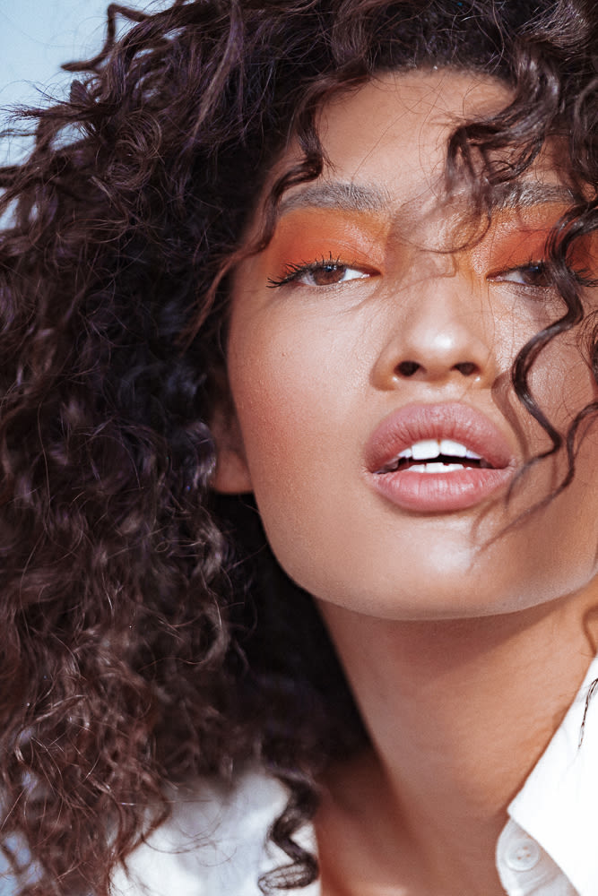 "The best trick for a seamless blend when you're using both a cream and a powder shadow is to put a little bit of a translucent powder—I used Wowder—over the cream before applying the shadow on top," Katie tells us. "Here I used Mac Paint Pot in Genuine Orange with a Nars shadow pressed over the top."