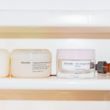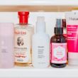 Sometimes I struggle with texture on my face. I’m a picker. I have that problem. I’m very obsessed with picking, so when I exfoliate it evens that out. I use salicylic acid—Stridex Pads. But then I bought actual salicylic acid, the liquid, from Paula’s Choice. And I just got Glossier Solution, so I’ve been using that. I’ll alternate between chemical and physical exfoliators, so I use a physical one from Murad that I really like. Every couple days, I mask—I love the Glossier masks, and I make my own bentonite clay masks as well. I’ll just alternate.