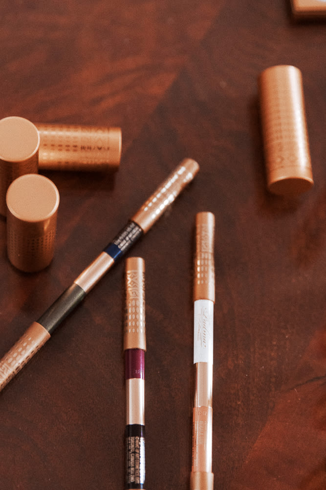 I made my favorite all-time makeup collection with MAC. It’s a bigger collection than most of their collaborations, and I had to cut a lot. They were like, ‘You should probably shoot for like, a dozen,’ so I did 17. [Laughs] These are the colors I’ve always wanted! My thing is all about the eyes. We do have six beautiful lipsticks—three are kind of natural lipsticks, which I wear if I do a big, beautiful eye. I love navy blue eyeliner instead of black eyeliner. I feel like black can be a little harsh and two-dimensional, whereas a navy, especially on brown eyes, makes them stand out. It gives you a profundity and a depth of color—rich color that’s a bit more vibrant. For me, I don’t want my makeup bag to be too big, so I did dual-ended eyeliners. I have the purple, Bordeauxline, on right now. People don’t think of wearing purple eyeliner, but it’s beautiful, especially on medium skin tones. I like the brown we made, too, because it’s not a red-brown. A red-brown eyeliner on brown people will not do the trick like it will on fair people. That’s why this has a green-y undertone. You can use them separately—sometimes I use one on the top with a little wing, and the other just under the lashes, and I smudge it—or you can mix the two to make a variety of peacock shades. I’m not particular about mascara, really. But I am particular about curling my lashes. They grow down, so my face completely changes once you curl my eyelashes.