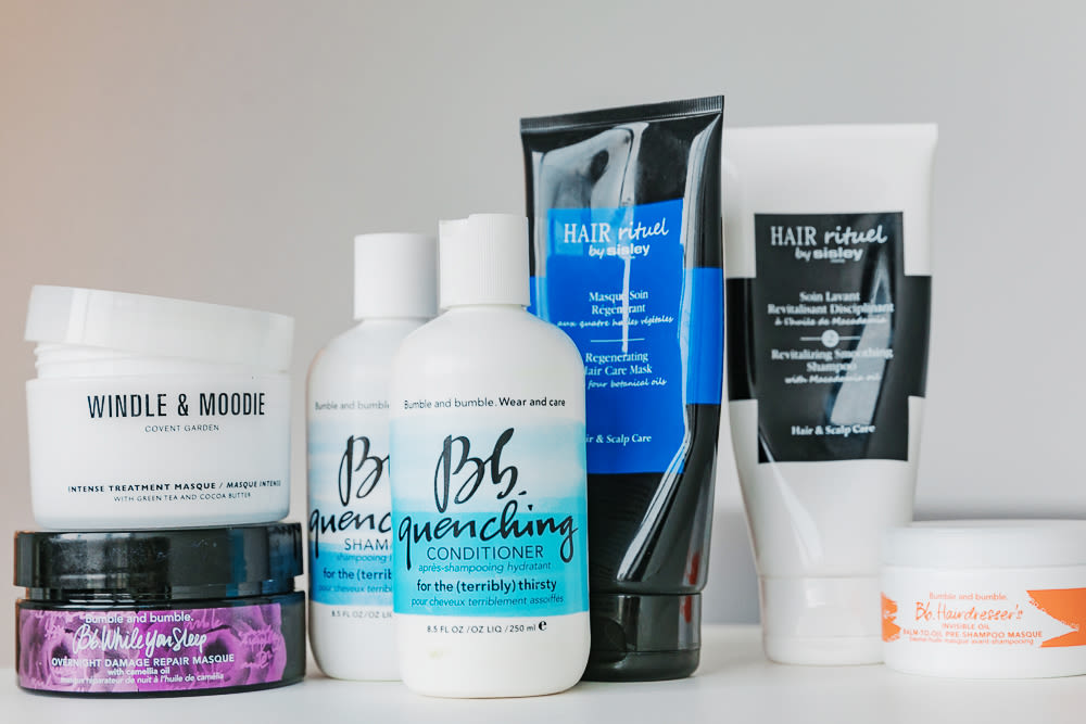 On the lightweight end of the spectrum, there’s the B+B Quench Conditioner, followed by the slightly denser Kiehl’s Olive Fruit Oil Nourishing Conditioner, Verb Hydrating Conditioner, and the L’Oréal Advanced Haircare Total Repair “balm”. These are the white wines of my conditioning world, not to be considered in the same breath as “heat styling” or full body cringe “back combing”. They all hydrate and smooth—I’d say they “maintain”—but don’t cross over into any noticeable positive change for me.