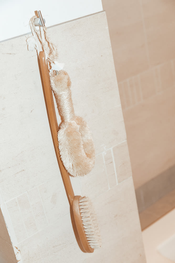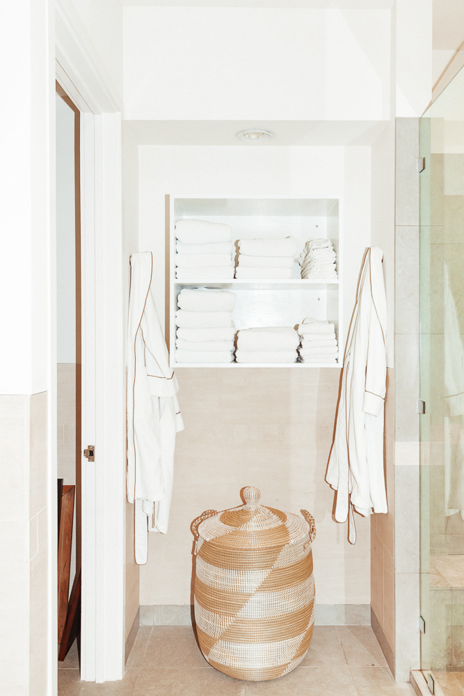 Before bed, I do La Mer with this Tan Luxe The Face. I don’t really go in the sun much, but I like to have a little glow. I have these Cle de Peau wipes, and I’ll take the makeup off first and then cleanse with the Malin & Goetz. I love the SK-II masks, but I don’t usually do them before I go out. I will sometimes go to my freezer and wrap a bunch of ice cubes in a cloth and lay there for a minute to decompress.