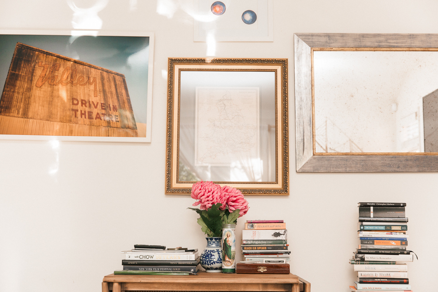 I’m friends with Cassandra Grey, who has Violet Grey. She always tells me what the good makeup is. The most recent one that I’m obsessed with is the Tom Ford Shutter Lash Mascara. It just goes on in such a nice, sexy, wet look. It’s really classic mascara. I only use Armani foundations or tinted moisturizers because they don’t have any of the ingredients that block pores—even though I have dry skin, I can break out. I use the Luminescent Color Control Bright Moisturizer from Armani. I always rotate my blush, but at the moment I’m using a Bobbi Brown Shimmer Brick Compact. And I love the Charlotte Tilbury palette called Filmstar Bronze and Glow with the brown and the shimmer. It’s a little bit of what you’d use for contouring, but it’s not really contouring. I was using the Tom Ford liquid liner for the top lid, but I’ve moved on to Stila Waterproof Liquid Liner, which I read about in the Sunday Times. It’s not a brush, it’s a little applicator which has a little more precision. The brush seems to flick out a bit if I do something wrong, but that’s so not the case [with the Stila]. I use the Glossier Boy Brow, and then I have many lip glosses and lips. I am at the moment using the Maybelline—I mean, I know everyone has these sort of permanent lipsticks now, but my favorite one is still Maybelline Super Stay Matte Ink. You put this on in the morning, and it just stays on all day. It’s so great. I’ve always used Guerlain powders. It’s sort of a reflective, translucent powder, and I use it as the final thing I put on my face. I use the Meteorites in Medium—it’s just so pretty. Everything about Guerlain is pretty. I’ve been enjoying my Tarte full-coverage concealer—I quite like a thick concealer. You use a tiny bit of it, but it’s really good. I might even re-purchase it. I used to go to India a lot, and the eyeliner there is so rich. I used to be so confused to how the ladies got that effect on their eyes, because I couldn’t buy that stuff anywhere [here]. I was researching online, and they have this company that does this eyeliner that goes on wet look, and it’s for the waterline. It just stays on, and you can leave it on—if you’re on holiday, you can get in and out of the sea, and it looks better and better all day. It’s super smudgy, so you have to be careful with it. It has almost that doughy quality. It’s called Biotique Kaajal, the traditional Ayurvedic one. It’s my favorite one.