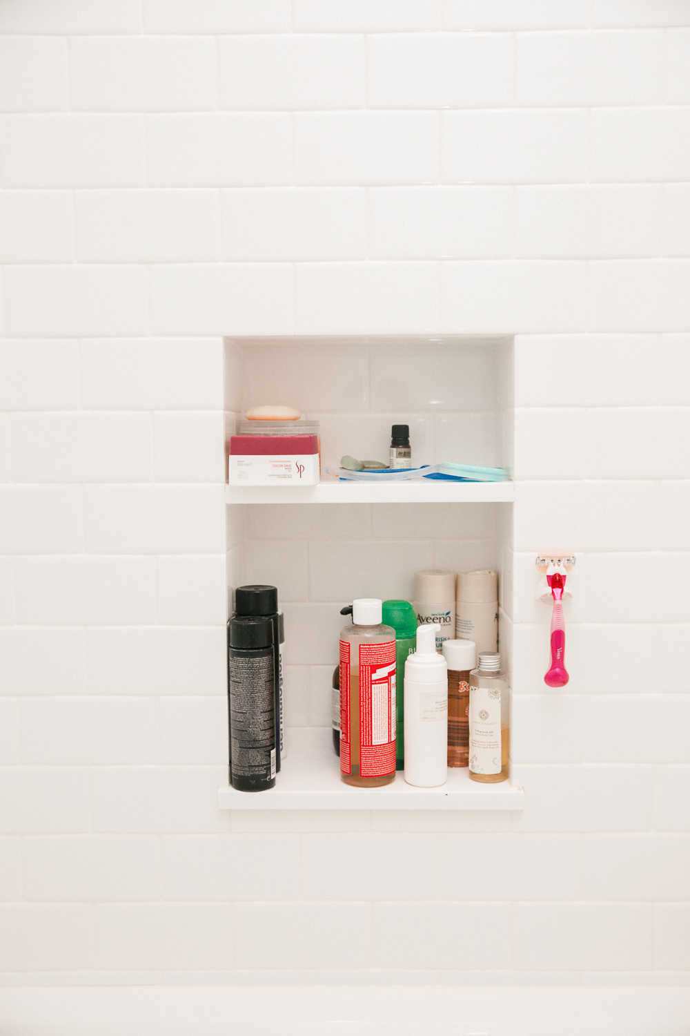 I try and wash my hair as much as possible. I’ve been surfing a lot this summer, and been washing it a bit more because there’s sand in it. If I train, I have to wash it, because I sweat. I use Aveeno—I like to use really simple hair stuff. I have a lot of hair, and because it goes all over me I don’t want to have too many chemicals. I use Aveeno shampoo and conditioner, because it’s kind of pure ingredients. I have a lot of hair and it kind of takes care of itself. I don’t have to put too much time or effort into it. Sometimes I’ll put an oil and leave it for a day, so it stays moisturized. But I don’t pay that much attention to my hair. I think that my natural hair is blonde with middle parting, so when I get to that after I’ve done a job then it’s like, ‘Alright, I look boring now, maybe I’ll change it.’ But I do try and keep my color up to date, and try not to have too many roots…but now I have loads of roots, so!
