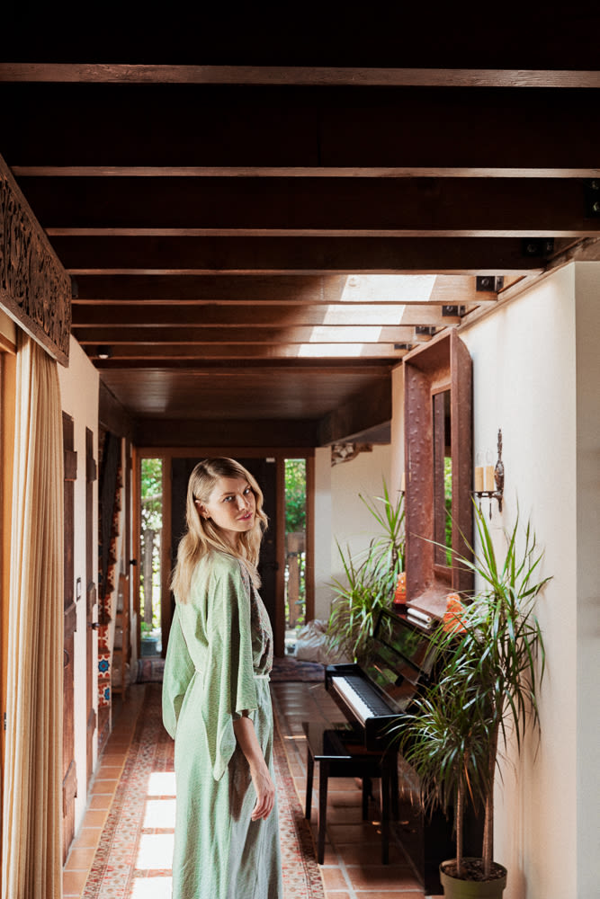 Even though I appreciate the city, I’m a full on country girl. It’s funny, I came out to California originally because I started acting. Someone told me about Topanga, and I was like, ‘This is where I’m living.’ One of the things I really love about living in California is that of course you’ve got the arts and Hollywood, but you also have the world of health and wellness, and amazing technology and sustainability. My father’s a retired pharmacist who’s more into natural modalities of healing—he’s a big advocate of health and mystic ways of healing. And my mother was also in the medical field. She was a med tech, but then she became a massage therapist. She home-birthed most of us, and she was always making our face products herself. Now I do a lot of natural body work. I do raindrop therapy with essential oils where, basically, you’re putting the oils on your spine and the bottom of your feet. Sometimes I’ll go to this cheap little place down the road with my boys where they do it for like 35 bucks. You keep your clothes on, so it’s kind of a family thing we do.