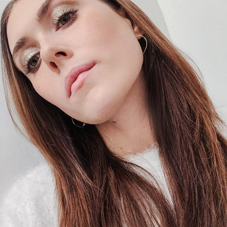 Next up is the BEST part! I like to arrive at my makeup table with a foamy almond milk dirty chai tea latte, two shots, for fuel and laser focus. Most importantly, when doing a glitter-lewk I like my skin to look fresh and light, not too “done.” I apply staple products but focus mostly on concealer (Nars Radiant Creamy) and a really good cream blush (Lilah B Be Lovely) that gives you that…”sunburn” glow. Is that horrible to say? Too late.