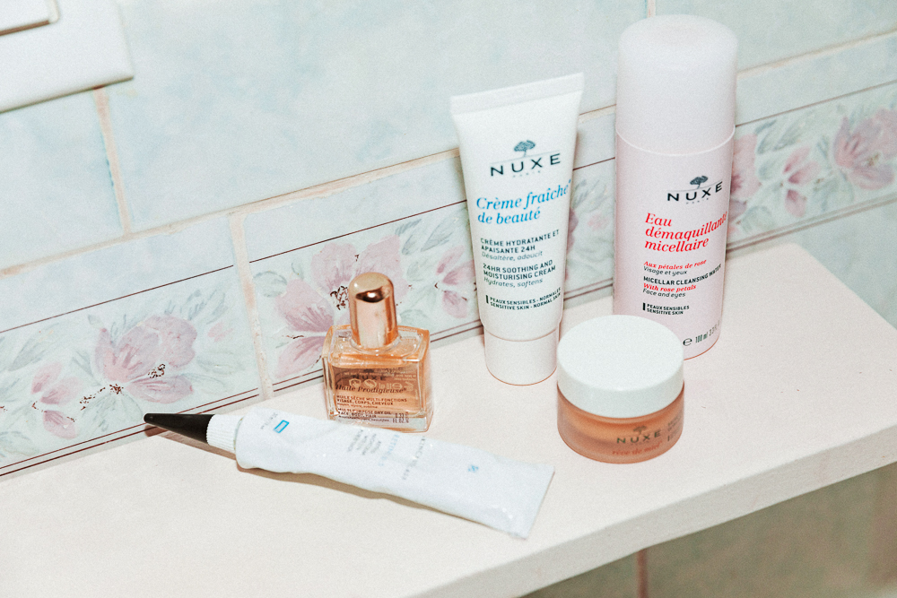 I like science-y skincare. I’ve been using a Skinceuticals retinol since I turned 40—I realized my skin texture was changing, and I wanted to keep these freckles that were popping up under control. But I do have a weird philosophy [about sunscreen]. The only time I wear it is when I go to the beach. Skinceuticals’ sunscreen is my favorite because it’s a super sheer veil that I can tolerate. I’ve been traveling a lot, and between planes and different time zones, I’ve gotten really dehydrated. My skin just soaks up these Nuxe products I got in Iceland—this oil, this honey lip balm and hand cream. I also use their rose water cleanse to remove makeup and wash my face. What’s amazing about it is that I don’t need water, which I prefer because washing with water makes my face feel dry.